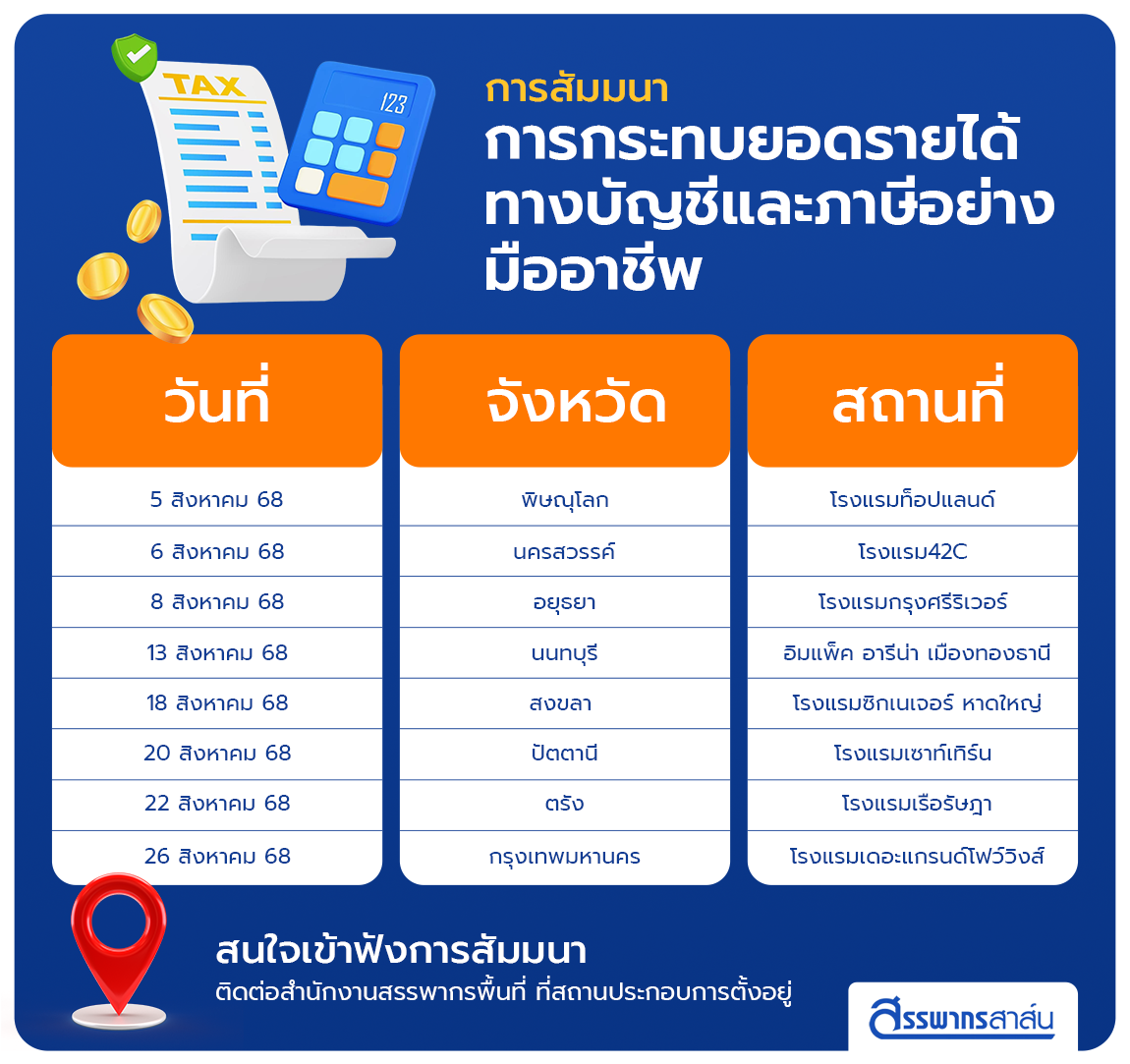 พิเศษ – สำหรับผู้เข้าฟังการสัมมนาที่เป็น CPA หรือ CPD ที่ลงทะเบียนนับชั่วโมงการอบรมไว้กับสภาวิชาชีพบัญชีในพระบรมราชูปถัมภ์ สามารถรับหนังสือรับรองชั่วโมงการอบรมได้ หลังจบการสัมมนาในวันนั้น