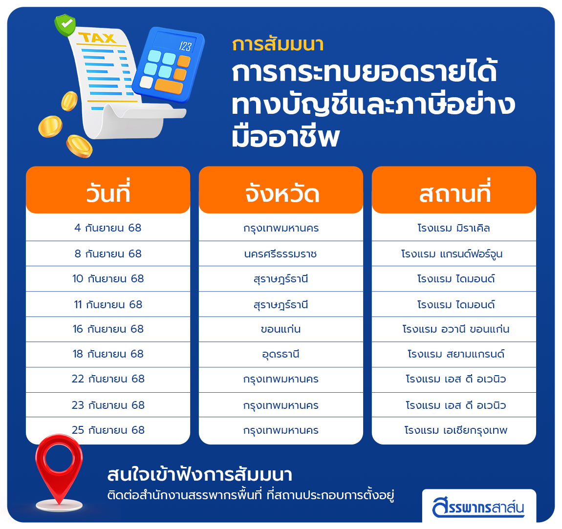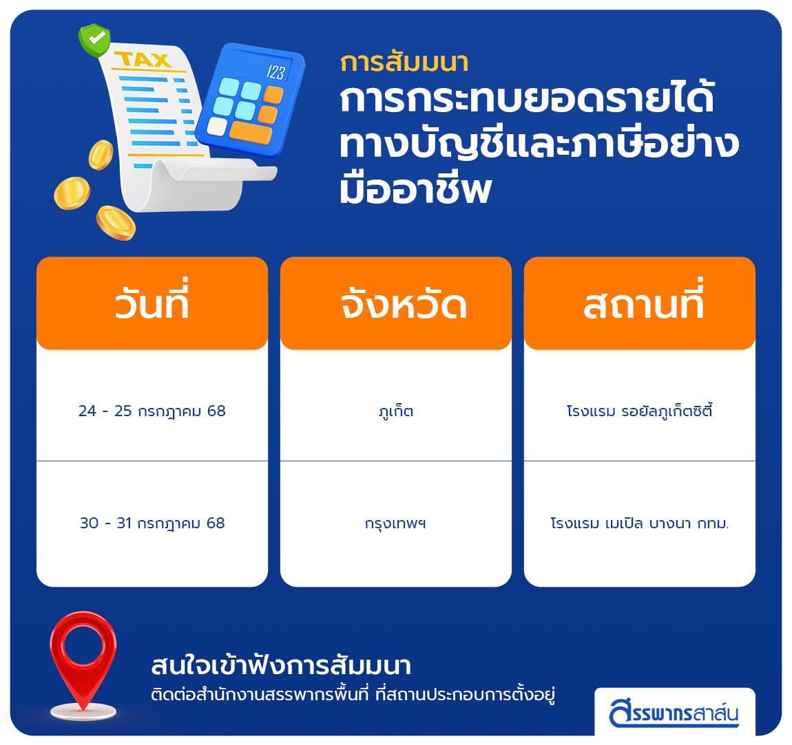 พิเศษ – สำหรับผู้เข้าฟังการสัมมนาที่เป็น CPA หรือ CPD ที่ลงทะเบียนนับชั่วโมงการอบรมไว้กับสภาวิชาชีพบัญชีในพระบรมราชูปถัมภ์ สามารถรับหนังสือรับรองชั่วโมงการอบรมได้ หลังจบการสัมมนาในวันนั้น